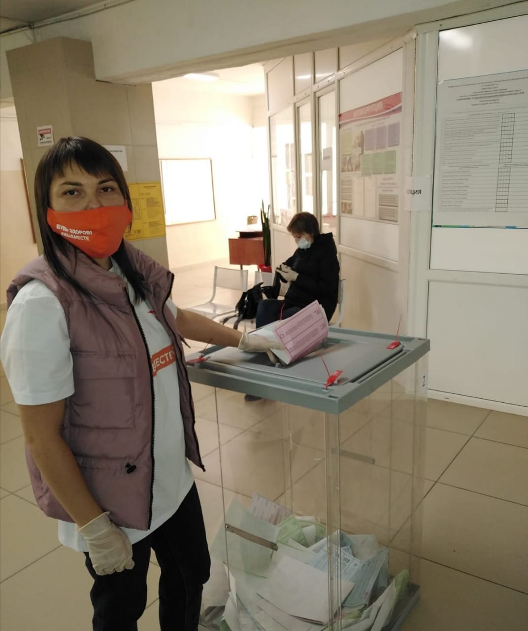 Задачей волонтеров являлось- помощь гражданам на участках для проведения голосования в части термометрии, выдачи средств индивидуальной защиты органов дыхания, обработки рук, помощь пожилым и маломобильным гражданам.
